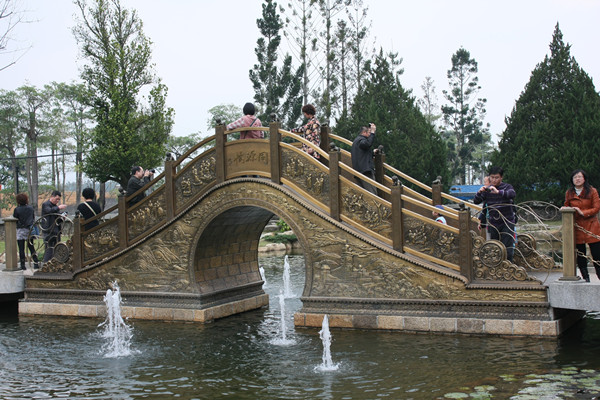 同源橋,朱炳仁創(chuàng)作溝通兩岸第一金橋。由朱炳仁設(shè)計(jì)創(chuàng)意的“同源橋”,因海峽兩岸“同出一源”得名。此橋用10噸銅鑄成,橋長近10米,寬2米。