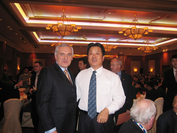 2005年1月21日 愛爾蘭總理伯蒂·埃亨先生在上海四季酒店接見沈陽(yáng)青年國(guó)際旅行社有限公司董事長(zhǎng)倪琛善先生