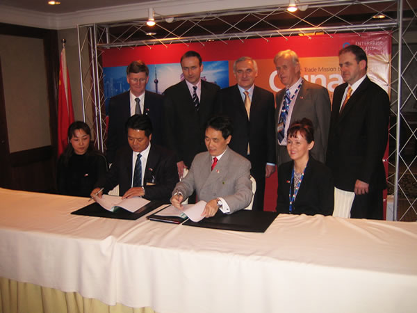 2005年1月21日沈陽(yáng)青年國(guó)際旅行社有限公司董事長(zhǎng)倪琛善與愛爾蘭UCD大學(xué)領(lǐng)導(dǎo)余曉晴簽定旅游及培訓(xùn)協(xié)議。