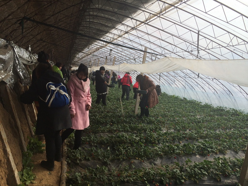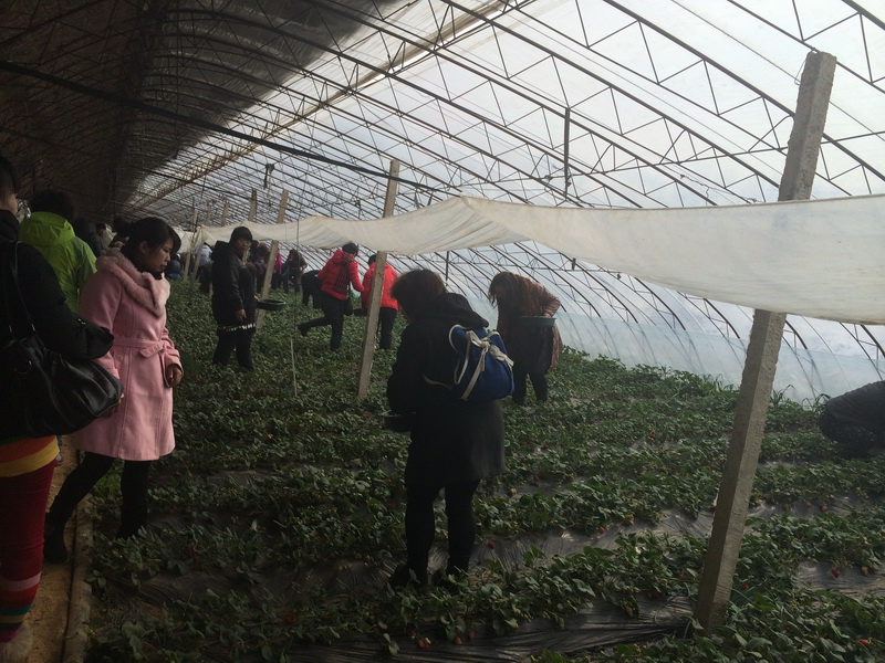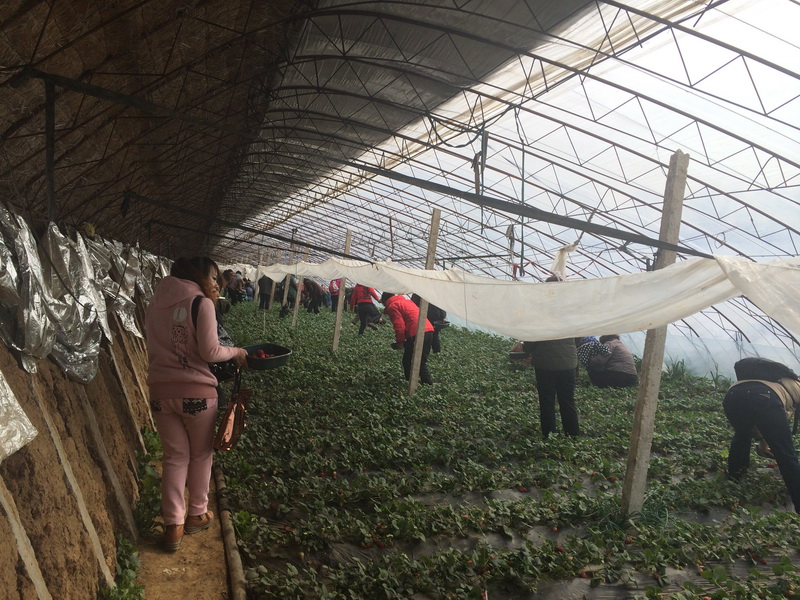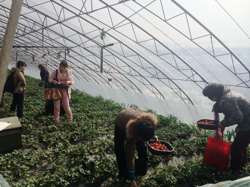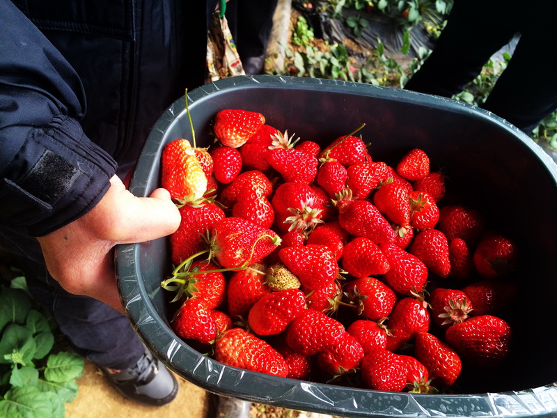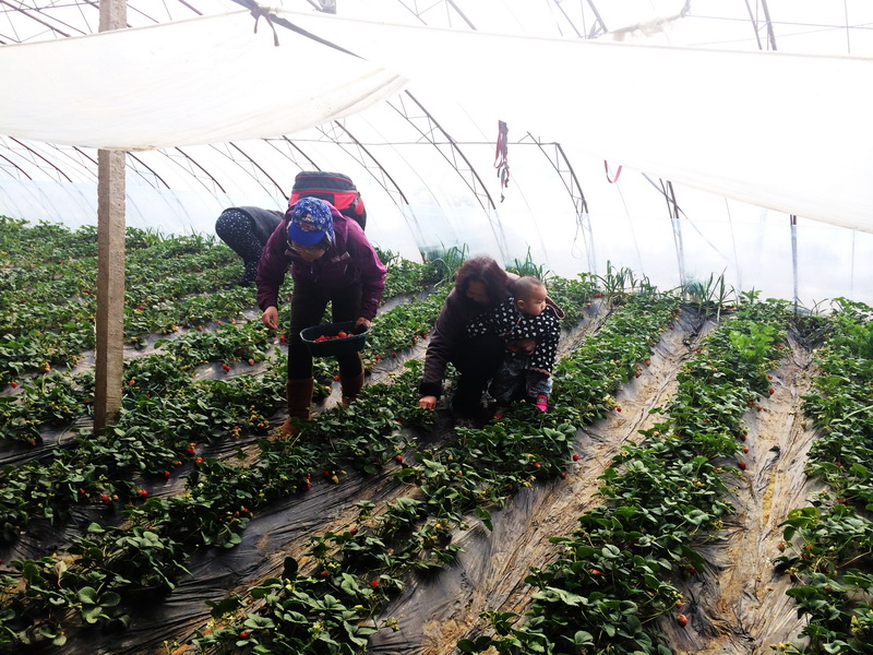 在溫室草莓大棚,大家盡情享受親近自然、自己動手采摘的樂趣。