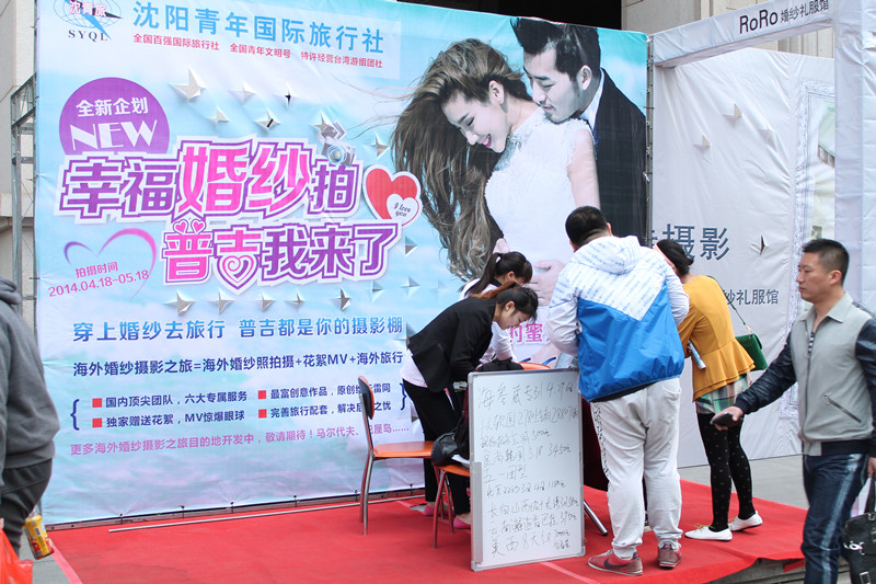 2014年4月25日,由遼寧廣播電視臺綜合頻道廣播主辦的“2014家有喜事——幸福來敲門”婚慶文化博覽會在沈陽中街商業(yè)城隆重舉行。沈陽青年國際旅行社副總經(jīng)理童帥為開幕式致詞。青旅獨家推出的普吉島婚拍及五一游系列產(chǎn)品受到了廣大游客的熱切關(guān)注,現(xiàn)場咨詢報名火爆。本次婚慶文化博覽會將為期舉行10天,于2014年5月4日落下帷幕。