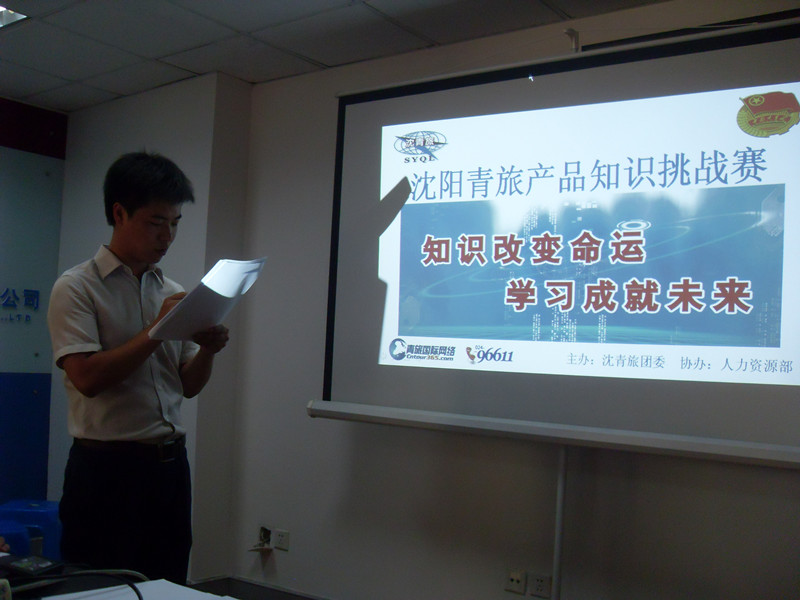 2013年6月13日,首屆沈陽青旅業(yè)務(wù)知識精英挑戰(zhàn)賽盛大開賽!本次競賽由沈陽青旅團委主辦、人力資源部協(xié)辦,倪總等各位領(lǐng)導(dǎo)擔任大賽評委。各部門派出業(yè)務(wù)骨干,現(xiàn)場激戰(zhàn)交鋒、戰(zhàn)況扣人心弦,為大家獻上一場精彩紛呈的比賽。最終臺灣中心徐靜榮獲冠軍,企劃中心李云新和國內(nèi)中心馬顥明分別獲得亞軍、季軍。