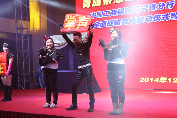本次的晚會共分為兩個部分:中國工商銀行遼寧分行與沈陽青年國際旅行社全面戰(zhàn)略合作儀式,以及沈陽青旅2015年年會。啟動儀式部分由身為遼寧廣播電臺著名主持人、同時也是我社形象代言人的大兵主持,伴隨著激情的水鼓舞和熱鬧的舞獅表演,在一開始就為晚會掀起了小小的高潮。各方領(lǐng)導(dǎo)分別講話后,共推啟動球、共飲賀酒,為啟動儀式畫上了圓滿的句號。
