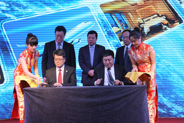 中國工商銀行楊子峰行長(右)與沈陽青旅董事長倪琛善先生(左)正式簽署全面戰(zhàn)略合作協(xié)議