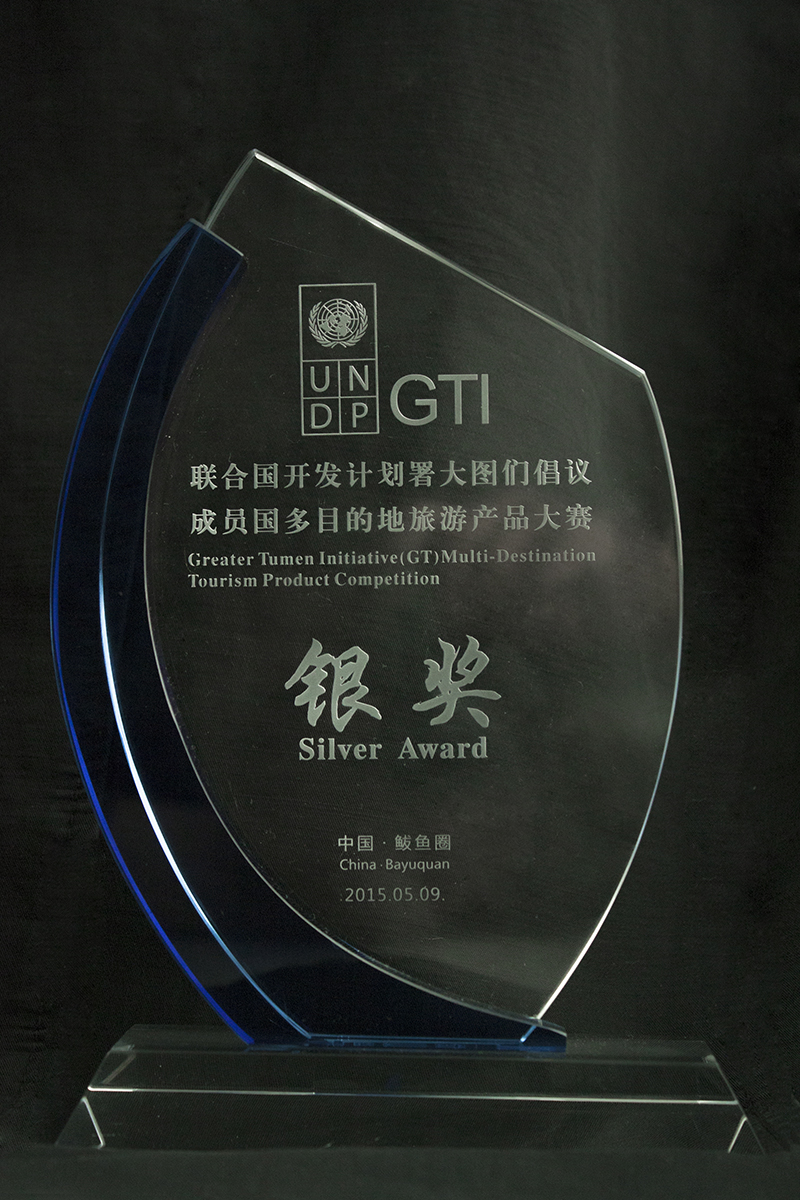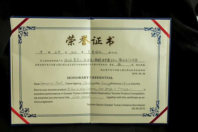 2015年5月9日 我社的旅游產(chǎn)品:游三國(guó)、看美山、泡溫泉、(朝鮮、海參崴、長(zhǎng)白山、營(yíng)口天沐)6日游 ,在聯(lián)合國(guó)開(kāi)發(fā)計(jì)劃署大圖們倡議成員國(guó)多目的地旅游產(chǎn)品大賽中表現(xiàn)優(yōu)異,榮獲銀獎(jiǎng)!